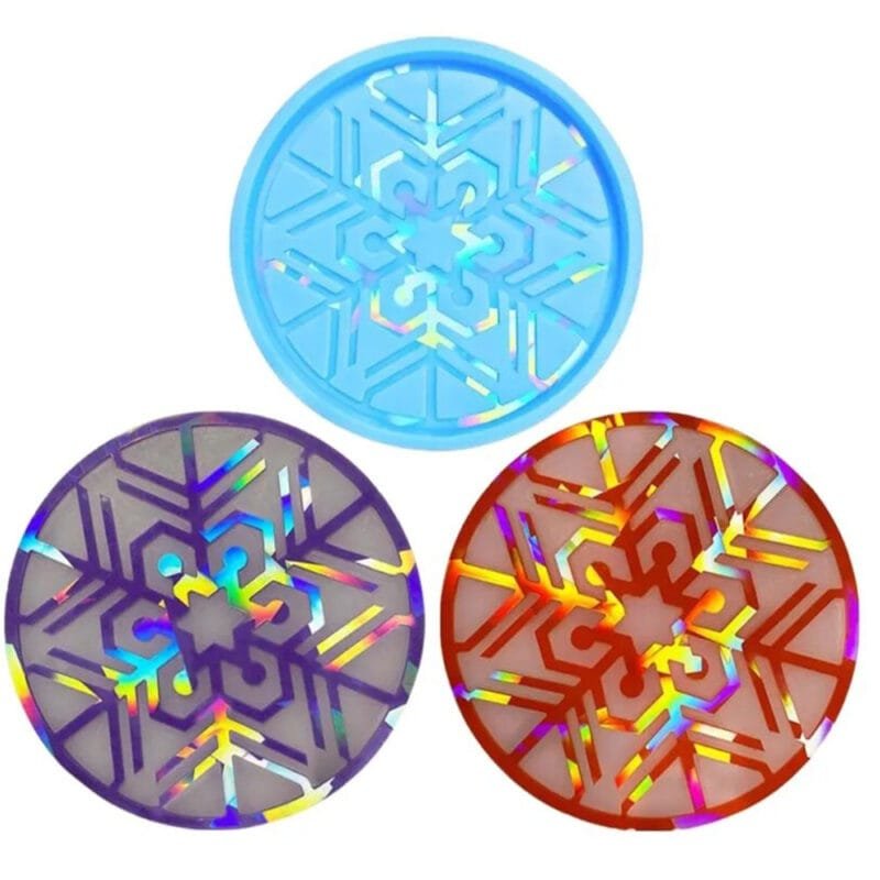 Holographic coaster silicone mold christmas snowflake resin epoxy